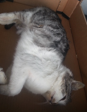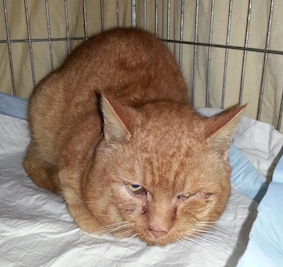 Der Arme lief schon eine ganze Weile herrenlos in Neukirchen-Hauptschwenda herum. Er hat eine Schwanzverletzung, so dass mittlerweile kaum etwas vom Schwanz übrig ist. Am 07.03.2015 konnte er nach vielen Versuchen endlich gefangen werden.