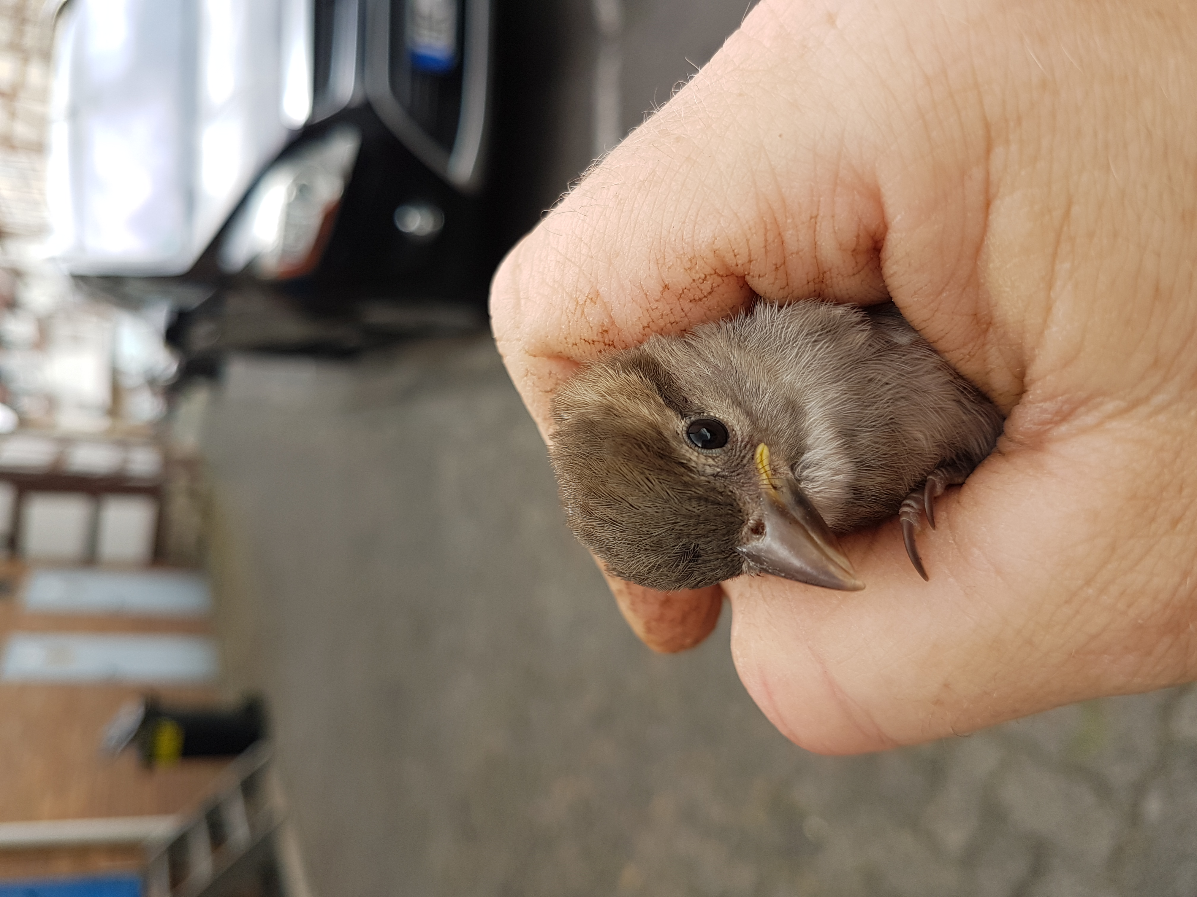 Am Samstag, 28.07.2018, hat sich dieses kleine Vögelchen ins Obergeschoss eines Neukircher Kaufhauses verirrt. Dank Info von Maike konnte der kleiner Kerl dann schnell gesichert werden und nach einem ordentlichen Schluck Wasser auch wieder ins Freie starten.