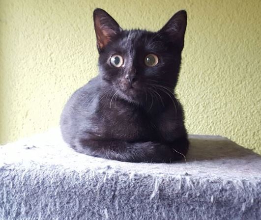 Aufmerksame Mitbürger haben beobachtet, dass das kleine schwarze Katzenbaby (geboren etwa Ende Mai 2016) über längere Zeit alleine an der Hauptstrasse Richtung Rückershausen herumstrolchte.