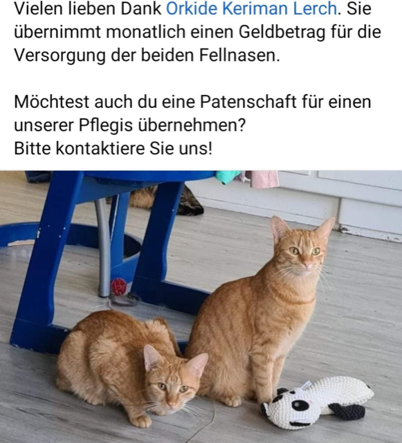 Bitte kontaktieren Sie uns, wenn Sie die Patenschaft für eines unserer Schützlinge übernehmen möchten - Tel.: 0 17 2/ 66 87 977. Schon jetzt bedanken wir uns herzlich für Ihre Hilfe!