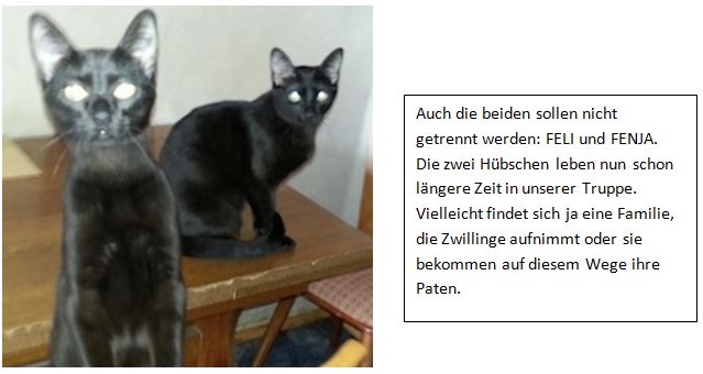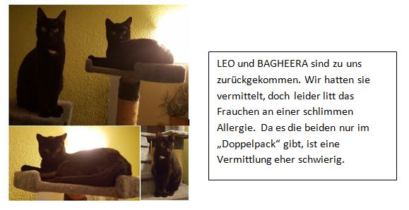 Für die beiden Unglücksraben hatten wir uns so gefreut, dass wir März diesen Jahres nicht nur Paten, sondern gleich eine neue Familie gefunden hatten, doch leider harmonierte es nicht und die beiden sind nun erneut in der Vermittlung. Wer hat ein Herz für die Panther und bietet ihnen endlich ein dauerhaftes Heim???
