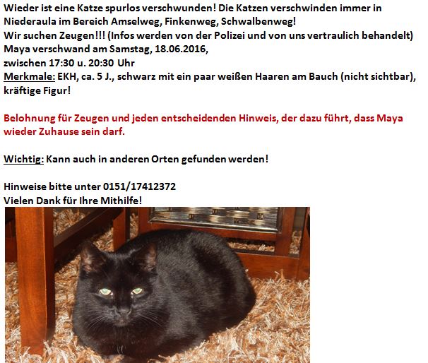 Bitte rufen Sie uns sofort an, wenn Sie Jeanie gesehen haben oder Hinweise geben können.