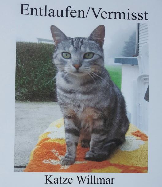 Die 7-jährige Katzendame Willmar wird seit dem 4. August 2016 vermisst. Sie ist in der Nähe des Schwimmbades in Neukirchen entlaufen. Willmar ist grau-getigert und sie ist kastriert.