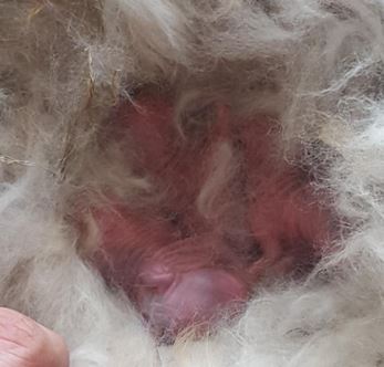 Als hätten wir es geahnt - Frau Flausch hat kurz nach ihrem Einzug bei uns Nachwuchs bekommen - zur Familie zählen nun drei Kleine. Ein viertes Baby ist leider totgeboren.