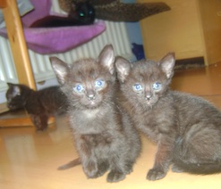 Hier sind die kleinen Kätzchen Fenia, Feli, Flöckchen, Funny und der kleine Kater Fabi. Sie sind im Mai 2012 geboren und sind die Kinder von Flora, die auch auf der Pflegestation lebt. Die Kleinen sind typische Katzenkinder, spielen gerne und sind verschmust.