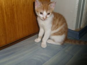 Er wurde als sechs Wochen altes Katzenbaby einfach ausgesetzt. Er hatte schlimmen Schnupfen und Fieber.