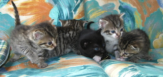 Die kleinen Katzenkinder Olga, Olivia, Odin und Ole wurden am 01.05.2014 von einer wilden Mutter geboren.