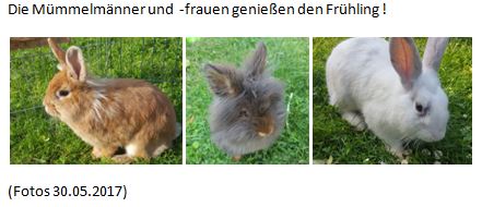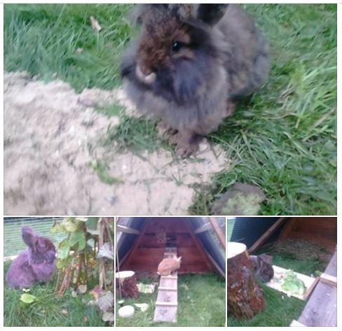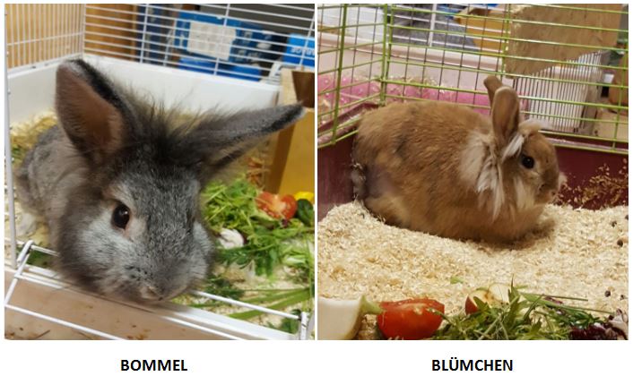 Blümchen und ihr Mädchen "Baby" sind im Oktober 2017 nach Breitenbach gezogen - hier grüßen die beiden aus ihrem tollen Aussengehege. (So sollten alle Kaninchen wohnen!) Bommel lebt nun ein glückliches Rammlerleben im Tierpark, Kirchheim.