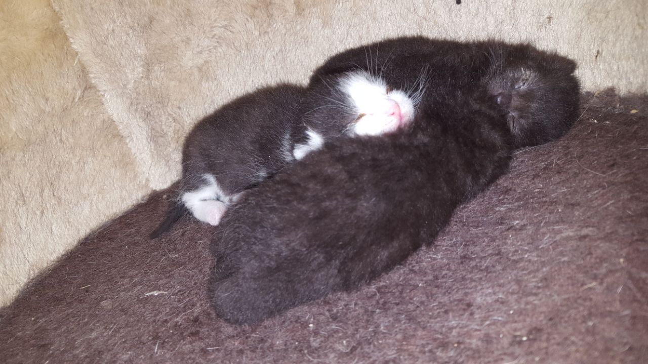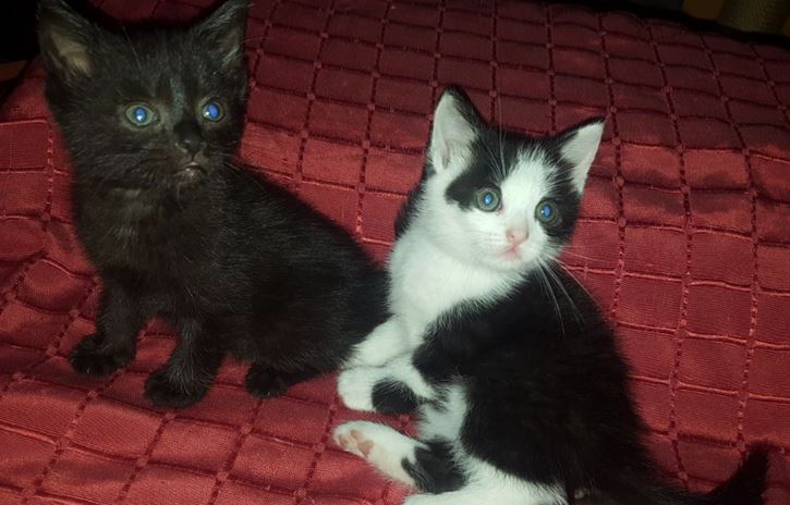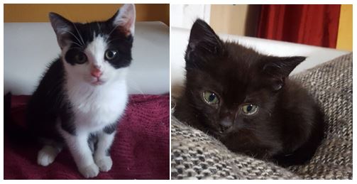 Hier sind die beiden im November 2017 - Nelly ist die schwarz-weiße und Nilix ist das schwarze Katerchen: