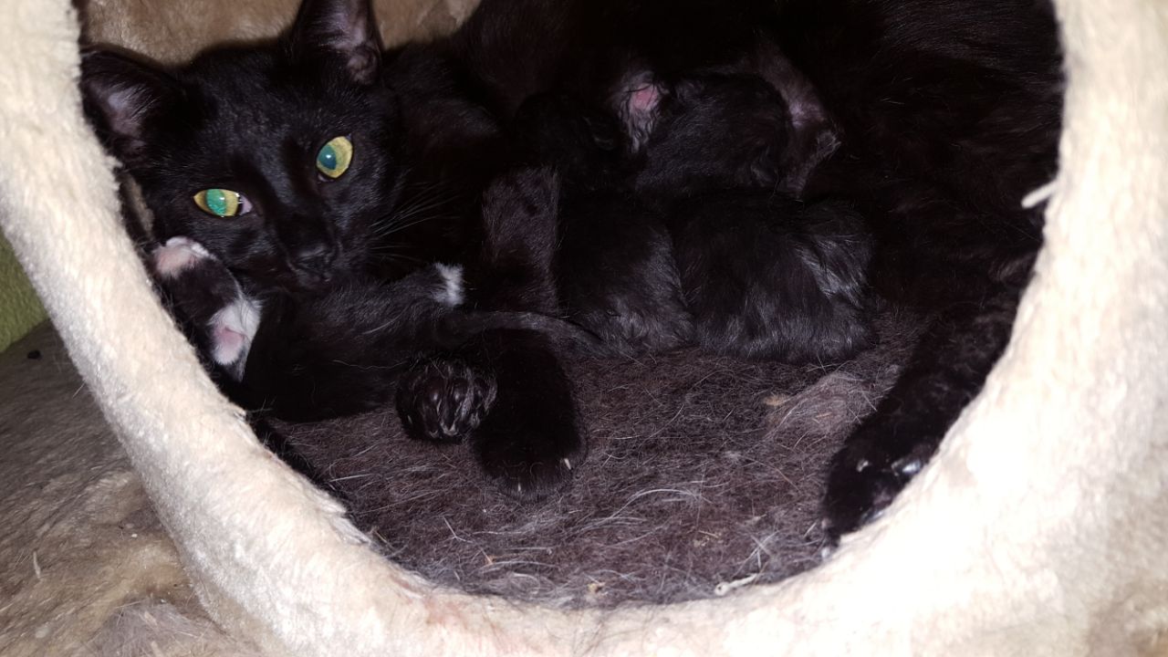 Katzendame Lilu hat vor 12 Tagen Nachwuchs bekommen, den sie jetzt in aller Ruhe bei uns großziehen darf. Sie kümmert sich prima um die Kleinen. Anfang Oktober ist die kleine Familie dann soweit, in ein neues Zuhause umzuziehen. Bei Abgabe werden alle mehrfach entwurmt, geimpft und gechipt sein. Sie können sich bereits jetzt für eine Vermittlung bewerben.