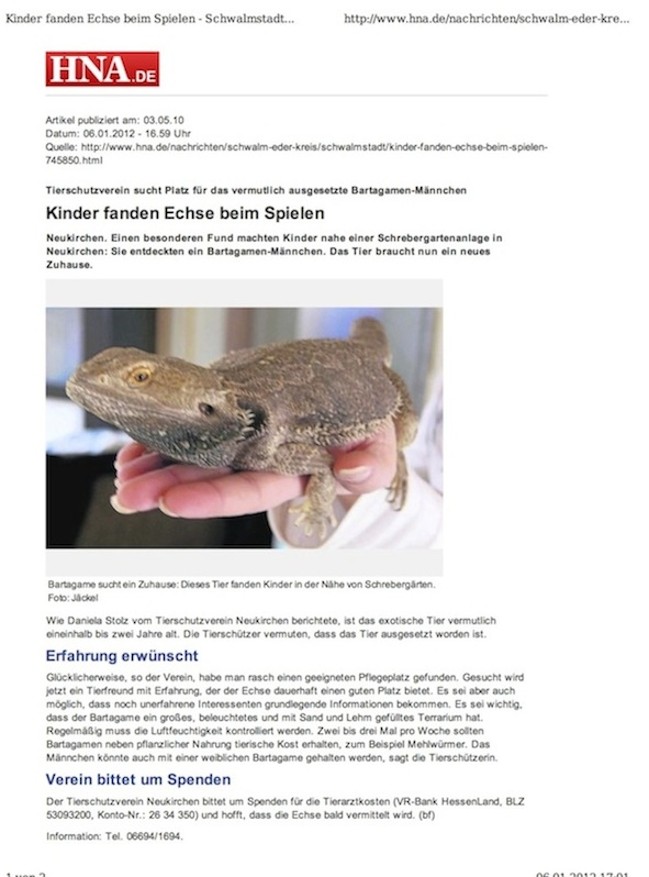 HNA vom 03.05.2010 - Kinder fanden Echse beim Spielen